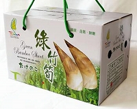マダケ属、九州、関西近辺に多い。皮の色は赤紫で先端が淡い緑色の美しいタケノコ。 成長した竹も粉をふいた淡い緑で大変美しい。固めだがアクが少なく、味も淡白。地上に出てから収穫されます。5月が旬。 | |